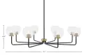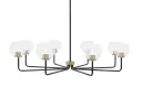 The Sandia 8 Light Chandelier combines contemporary design with industrial flair, featuring a dramatic 43.5-inch span perfect for large dining tables and kitchen islands. The matte black and new age brass two-tone finish creates visual interest, while clear bubble glass shades add texture and dimension to any space.