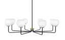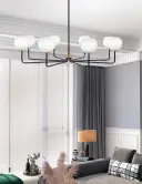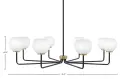 The Sandia 8-Light Chandelier combines contemporary design with timeless elegance. Its 43.5-inch span and matte black with brass accents create a striking focal point, while white marble glass shades provide refined, diffused illumination.