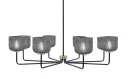 The Sandia 8-Light Chandelier makes a striking statement with its 43.5-inch span and sophisticated matte black and brass finish combination. Eight smoke textured glass shades create beautiful ambient lighting while the adjustable hanging height accommodates various ceiling configurations.