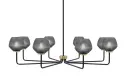The Sandia 8-Light Chandelier makes a striking statement with its contemporary two-tone finish combining matte black and new age brass. Eight smoke textured glass shades create beautiful ambient lighting while the 43.5-inch width provides substantial presence over large dining tables and kitchen islands.