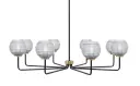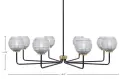 The Sandia 8-Light Chandelier makes a striking statement with its 43.5-inch span and sophisticated matte black and brass finish combination. Clear ribbed glass shades add texture while providing beautiful light diffusion across large spaces.