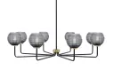 The Sandia 8-Light Chandelier makes a striking statement with its 43.5-inch span and contemporary mixed-metal design. Matte black paired with new age brass creates visual interest, while smoke ribbed glass shades diffuse light beautifully across large spaces.