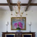 The Majesty chandelier delivers sophisticated glamour with its gold leaf finish and crystal accents. Six lights provide ample illumination while the elliptical design creates visual interest from every angle.