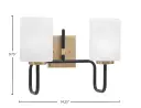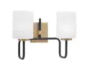 The Sandia 2 Light Bath Bar combines sophisticated matte black and new age brass finishes with elegant white marble glass shades. Perfect for contemporary and transitional bathrooms, this fixture provides excellent vanity lighting.