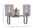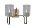 The Sandia 2-Light Bath Bar combines matte black and new age brass finishes for striking visual contrast. Smoke bubble glass shades diffuse light beautifully while adding texture and depth to bathroom spaces.