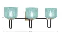 The Sandia 3 Light Bath Bar combines modern sophistication with a striking pop of color. Featuring a two-tone Matte Black and New Age Brass finish paired with textured turquoise glass shades, this fixture transforms any bathroom into a stylish retreat.