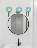 The Sandia 3 Light Bath Bar combines modern mixed-metal finishes with eye-catching turquoise textured glass shades. Perfect for adding personality to bathrooms, this fixture delivers both style and function with its dimmable design.