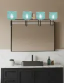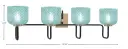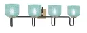 The Sandia 4 Light Bath Bar combines striking Matte Black and New Age Brass finishes with eye-catching turquoise textured glass. At 37.5 inches wide, it provides excellent illumination for larger vanities while adding a contemporary pop of color.