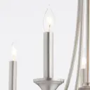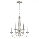 The Brooks chandelier offers a refined take on traditional lighting with its sleek Satin Nickel finish and slender frame. This 5-light fixture bridges classic and modern aesthetics, making it adaptable to various interior styles.