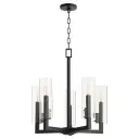 The Harbin 5-Light Chandelier features striking linear geometry and a sophisticated black finish that creates dramatic impact. Its bold architectural lines work beautifully in contemporary dining rooms and kitchen islands.