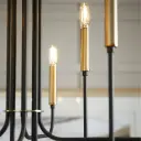The Hope chandelier masterfully blends minimalist design with industrial charm through its geometric boxed frame and luxurious black/aged brass finish. Eight candelabra lights provide warm ambient illumination perfect for modern lofts and contemporary spaces.