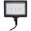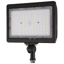 This 70-watt LED flood light delivers powerful 10,030-lumen output with natural 5000K daylight white illumination. Built with durable aluminum alloy in a bronze finish, it offers versatile mounting options and 50,000 hours of reliable performance for outdoor security and architectural applications.