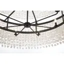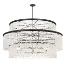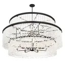 This stunning 60-inch linear chandelier combines traditional crystal elegance with contemporary scale. Fourteen candelabra lights illuminate polished quartz crystalline and cut glass beads, creating spectacular light refraction in a bold Sand Coal Black finish.