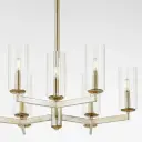 The Merrick 9-Light Chandelier combines simple elegance with modern geometry. Its aged silver leaf finish and right-angle framework create sophisticated visual interest while maintaining versatility across transitional and contemporary interiors.