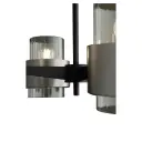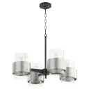 The Epsilon chandelier combines angular geometry with rounded profiles in a sophisticated black and satin nickel finish. Its minimalist design and neutral palette make it versatile for contemporary spaces.