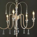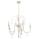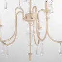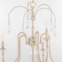 The Clasica chandelier blends romantic European design with rustic washed oak finish and crystal embellishments. Its shaped glass details and weathered tones create a sophisticated yet approachable aesthetic perfect for traditional and transitional interiors.