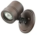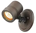 This sleek cast aluminum wall sconce delivers focused MR16 lighting in a compact 5-inch profile. The architectural bronze finish and cylindrical design complement contemporary exteriors while providing durable outdoor performance.