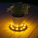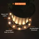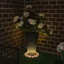The Grand Solar Uplight Planter Base transforms ordinary planters into glowing focal points with its warm 60-lumen upward glow. This 15" wireless solar-powered base requires no wiring or electricity, charging during the day and automatically illuminating at night. Perfect for patios, porches, walkways, and poolside settings.