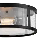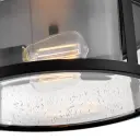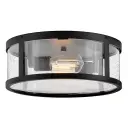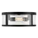 The Alfie flush mount combines timeless lantern styling with modern practicality. Its cylindrical clear seedy glass and black finish create instant curb appeal while the low-profile design works perfectly for covered outdoor spaces.