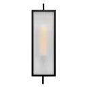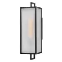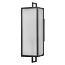 The Halden wall lantern combines modern rectangular framing with classic lantern styling in a sophisticated black finish. Large etched glass panels create a warm, diffused glow while the open bottom design ensures easy bulb maintenance.