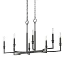 The Ellyn 8-Light Island Light combines clean geometric lines with a sophisticated Matte Black finish, creating a striking centerpiece for kitchen islands. Its adjustable height and sloped-ceiling compatibility offer installation flexibility.