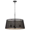 The Benedict pendant masterfully blends Art Deco inspiration with contemporary design, featuring a striking matte black exterior and warm aged brass interior. This 24-inch fixture delivers visual impact and versatility for modern and casual spaces.