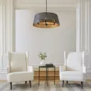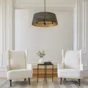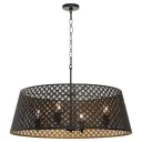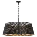 The Benedict pendant masterfully blends Art Deco motifs with contemporary design, featuring a striking matte black exterior and warm aged brass interior. Its 32-inch linear profile and 4-light configuration deliver both visual impact and functional illumination.