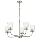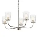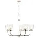 The Coralise chandelier brings sophisticated coastal elegance with its brushed nickel finish and distinctive clear water glass shades. At 30 inches wide, it makes a statement while maintaining versatility across traditional and contemporary spaces.
