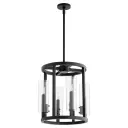 The Harbin 4-Light Pendant combines bold linear lines with a rounded housing to create a striking focal point. Its contemporary black finish and geometric design make it ideal for modern entryways and dining spaces.