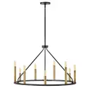 The Lazlo chandelier delivers contemporary sophistication with its streamlined Black frame and Lacquered Brass candle sleeves. Perfect for modern lodge, urban loft, or transitional spaces seeking a fresh, luxe aesthetic without excessive ornamentation.