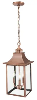The St. Charles 3-Light Hanging Lantern combines solid copper construction with flat glass panels for a traditional outdoor lighting solution. Its copper patina finish develops character over time while providing durable weather resistance.