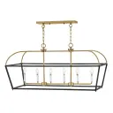 The Tate combines timeless lantern styling with modern linear design, featuring six lights in a striking Black and Lacquered Brass finish. Its 40-inch length makes it perfect for dining rooms and kitchen islands.
