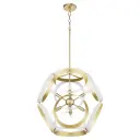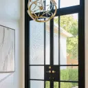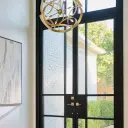 The Domain pendant brings architectural drama with its armillary sphere-inspired design. Clean geometric lines in studio white paired with aged brass create a sophisticated focal point that works beautifully in both traditional and contemporary spaces.