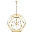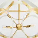 The Domain pendant brings architectural drama with its armillary sphere-inspired design. Clean geometric lines in studio white paired with aged brass create a sophisticated focal point perfect for grand spaces.