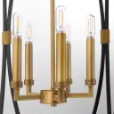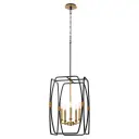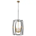 The Bishop pendant reimagines classic lantern styling with contemporary pillowed box frames and elegant wire wrap details. The matte black and brushed brass finish combination adds sophisticated contrast perfect for modern and transitional spaces.