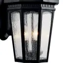 The Courtyard 3-Light Outdoor Wall Light combines traditional styling with durable wet-rated construction. Its textured black finish and clear seeded glass create welcoming illumination for entryways and outdoor living spaces.