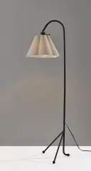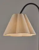 The Kendra Floor Lamp combines sleek modern design with soft elegance through its curved tripod base and scalloped oatmeal linen shade. At 62 inches tall, it provides warm ambient lighting perfect for living spaces and reading areas.