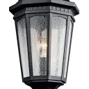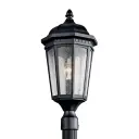 The Courtyard Post Light combines traditional design with durable outdoor construction. Featuring clear seeded glass and textured black finish, this wet-rated fixture provides reliable illumination for pathways and entryways.