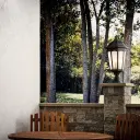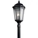 The Courtyard 3-Light Post Light combines traditional design with durable outdoor construction. Featuring clear seeded glass and textured black finish, it provides ample illumination for pathways and entryways.