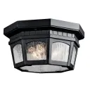 The Courtyard outdoor ceiling light combines traditional styling with practical outdoor durability. Its compact 12.25" width and textured black finish make it ideal for covered porches, entryways, and patios.
