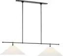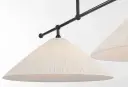 The Soren 54" Linear Chandelier combines classic bronze metalwork with sophisticated silk pleated shades, creating a refined lighting solution perfect for dining rooms and kitchen islands. Its substantial 54-inch length provides excellent illumination coverage while maintaining an elegant, uncluttered profile that complements both traditional and contemporary interiors.