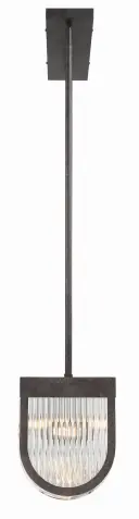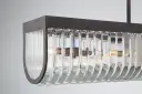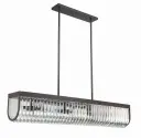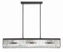 The Alister linear chandelier makes a bold statement with hand-cut U-shaped crystals positioned around a charcoal bronze metal frame. Its 49.75-inch length and uniform internal lighting create stunning crystal brilliance perfect for dining rooms and kitchen islands.