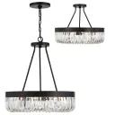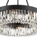 The Alister chandelier combines bold mid-century styling with hand-cut crystal brilliance. Its unique U-shaped crystal design and uniform internal lighting create stunning visual effects perfect for modern dining spaces and kitchen islands.