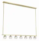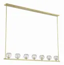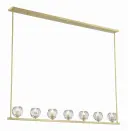 The Aragon 56" Linear Chandelier masterfully blends industrial framework with modern elegance through hand-cut crystal globes and integrated LED technology. Its versatile design allows upward or downward light direction.