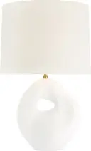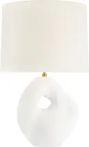 The Adria table lamp combines classic form with contemporary texture through its plaster white ceramic base and natural linen shade. At 25" tall, it provides substantial presence while maintaining versatility across traditional and modern interiors.