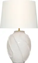 The Idalia brings sophisticated texture and organic form to any space with its distinctive glossy white crackle ceramic base and classic linen shade. At 28" tall, it provides ideal task and ambient lighting for bedrooms and living areas.