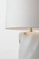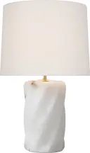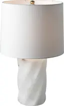 The Ripley table lamp features a stunning twisted alabaster base with natural stone veining, topped with a classic linen shade. At 25" tall, it provides sophisticated ambient lighting with organic elegance.