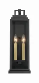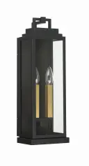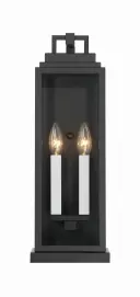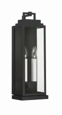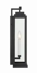 The Aspen Outdoor Sconce combines timeless lantern styling with contemporary flair. Clear glass panels and sleek black metal frame create striking curb appeal, while customizable candle sleeves offer design flexibility.