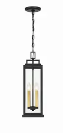 The Aspen Outdoor Pendant combines classic lantern charm with modern geometric design. Clear glass panels and a sleek matte black frame create timeless appeal, while dual-finish candle sleeves offer versatile styling options.