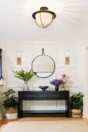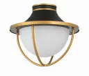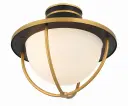 The Atlas Semi Flush Mount combines mid-century modern aesthetics with outdoor durability. Its striking matte black and gold finish with white glass creates premium curb appeal while the wet-rated construction ensures reliable performance.